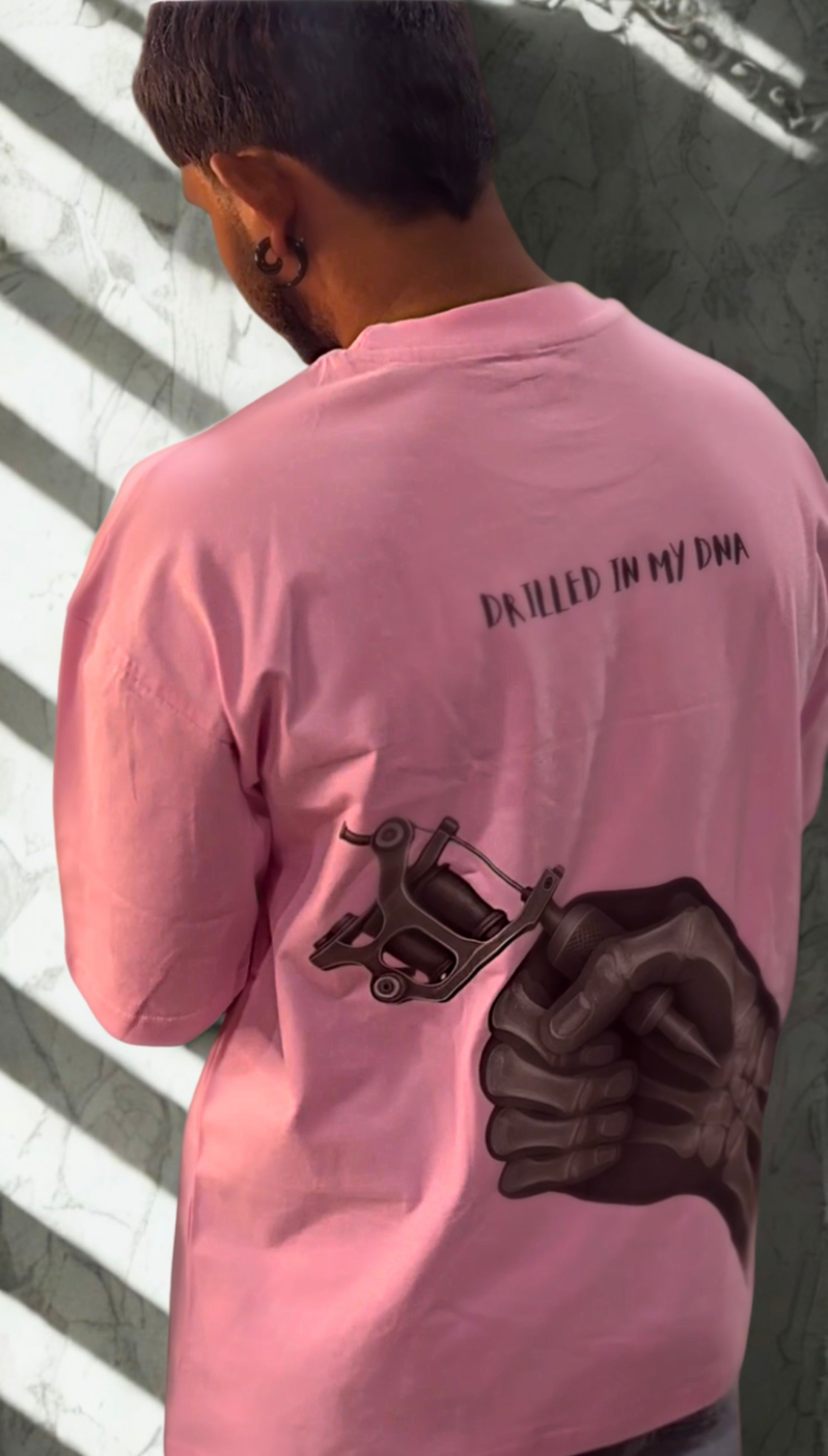 This isn’t just a tee—it’s a statement. The DRILLED IN MY DNA oversized T-shirt fuses tattoo artistry with streetwear attitude. Featuring a bold skeletal hand gripping a tattoo machine on the back and crisp lettering on the front, this design celebrates the ink that shapes who you are. Made in soft, premium cotton with a relaxed fit for all-day comfort. Wear it proud—because it’s in your DNA.