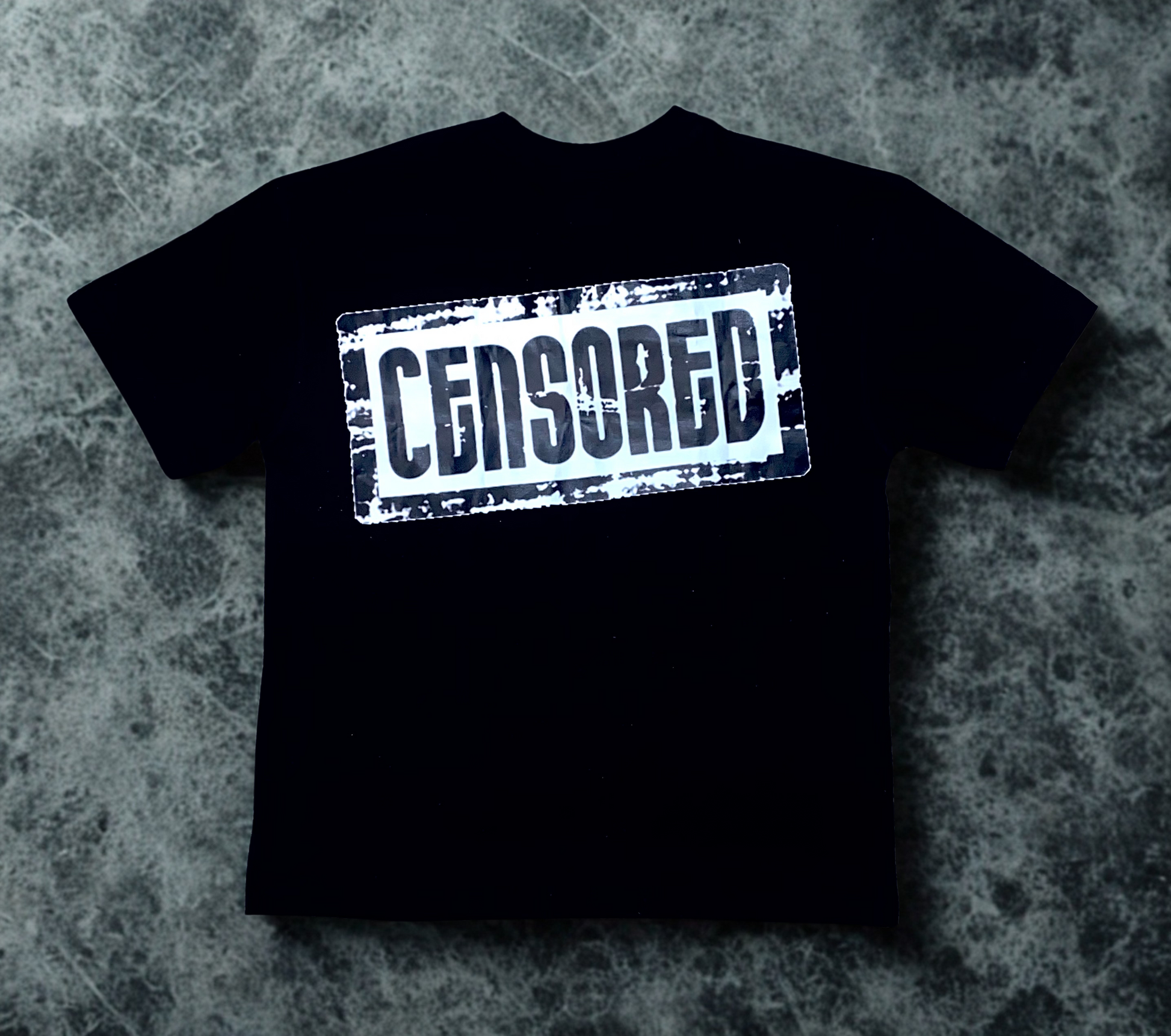 - Back: Dominated by a large, distressed “CENSORED” graphic for unapologetic impact